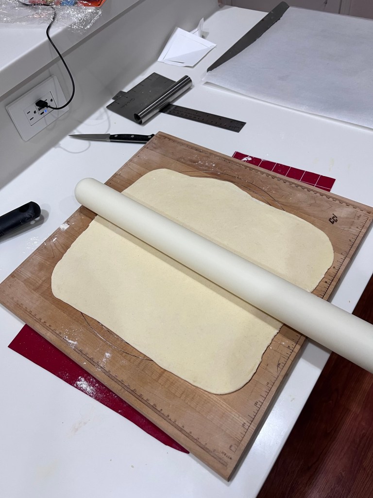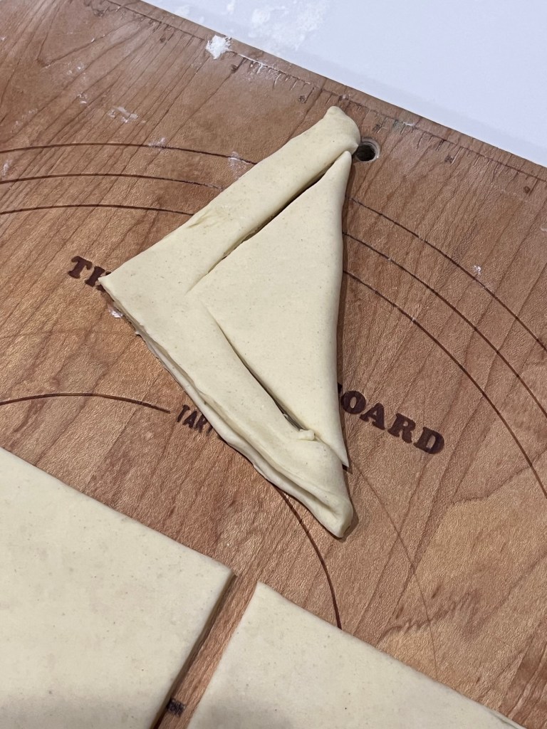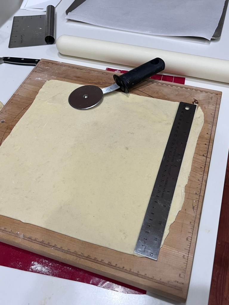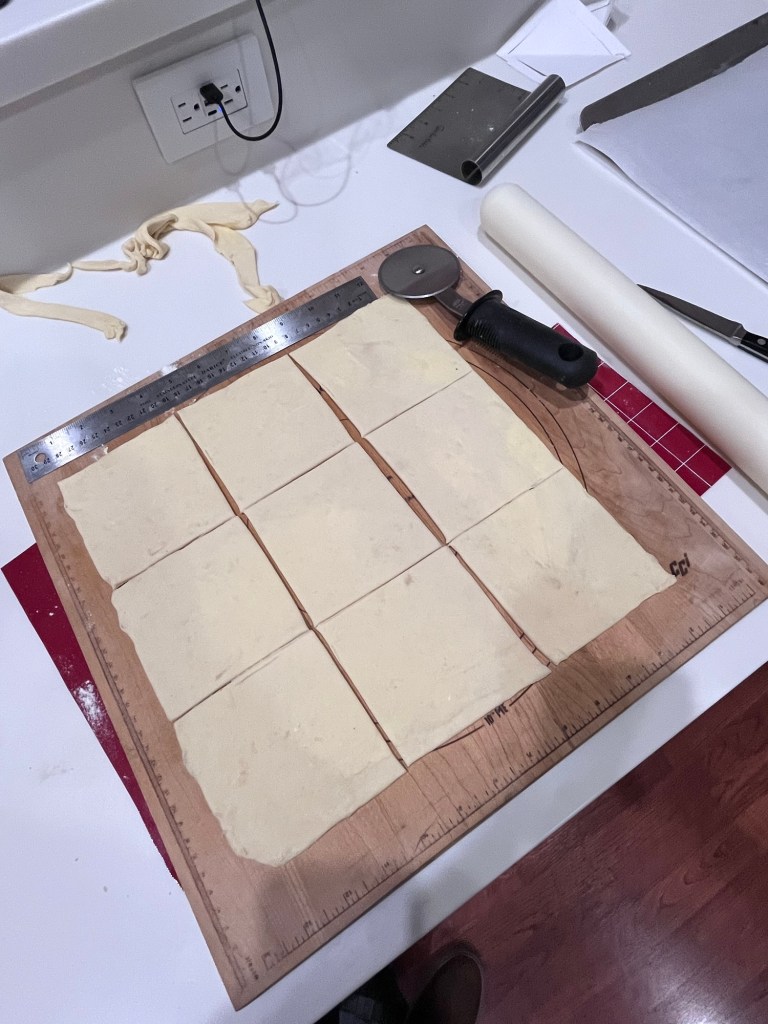 I combined and re-rolled the scraps from cutting the 12” square to make a few pain de chocolat, just because, why not?