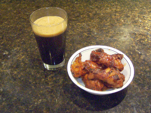 Choose your home-brew/wings pairing (for me it was a Big Honkin’ Stout, bottled May 28, 2011