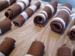 The chocolate rolls were excellent (tasted like tootsie roll) made from chocolate fondant and white gum paste. Full disclosure: usually I make my own fondant and gum paste, but I have not been able to make a good chocolate fondant. I bought this at Michael’s.