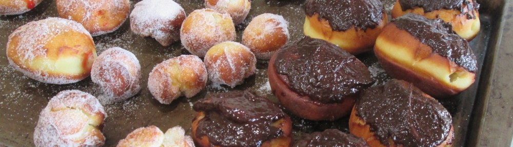 Yesterday morning was donut day in the 1y Kitchen. I had a recipe for yeast donuts and Emeril’s recipe (modified) for raspberry jelly donut filling, plus, I had extra crème pat and chocolate ganache waiting in the fridge from some tartlets I made for a party last Sunday which were perfect for a few Boston Cream dessert donuts. What could possibly go wrong with this?