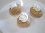 2. Pipe a swirl of vanilla whipped cream on top of the large puff