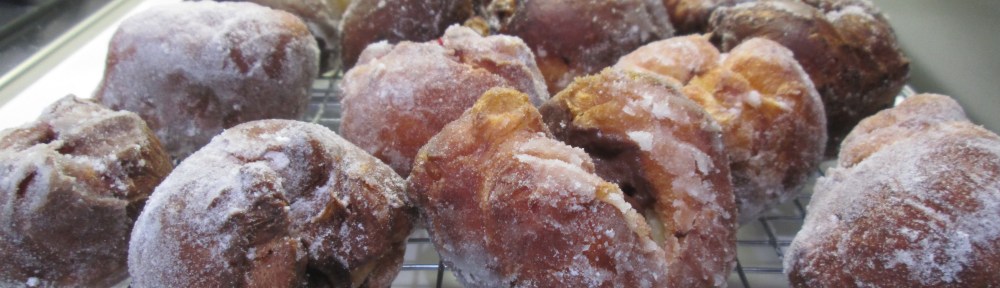 - Heat the oil in the fryer to 350oF and gently place the doughnuts, 2 – 4 at a time, into the pan or the fryer. They will puff up and float so you will need to turn them over periodically so that they cook evenly on all sides. They brown quickly because of the sugar and butter in the dough, but you need to cook them for about 10-12 minutes so that they cook through and the chocolate melts.