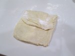 - Divide the filling among eight of the squares, using about a heaping tablespoon for each; a slightly heaped tablespoon cookie scoop works well here. Brush some of the beaten egg along the edges of each filled square.