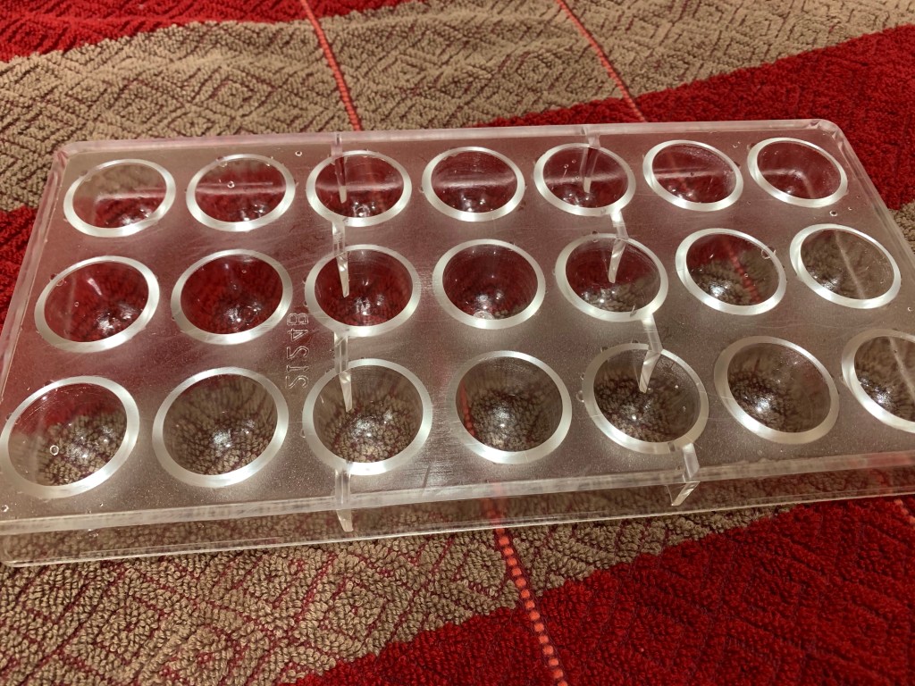 After golf this morning I frugally decided to make some filled chocolates. I tempered and thereby repaired, all 18 ounces and made some peppermint cream filled candies.