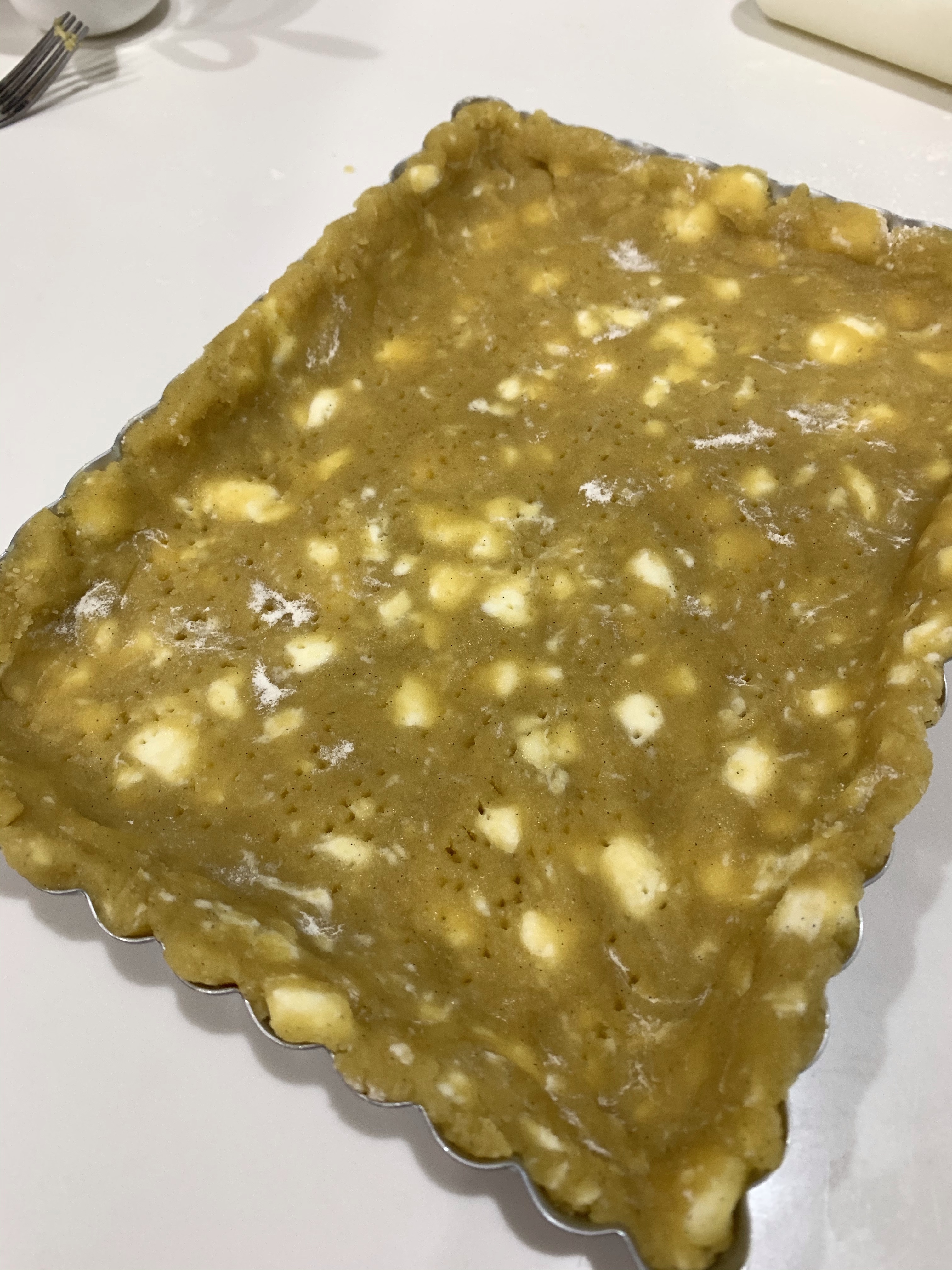 - Prick holes in bottom and sides of formed dough
