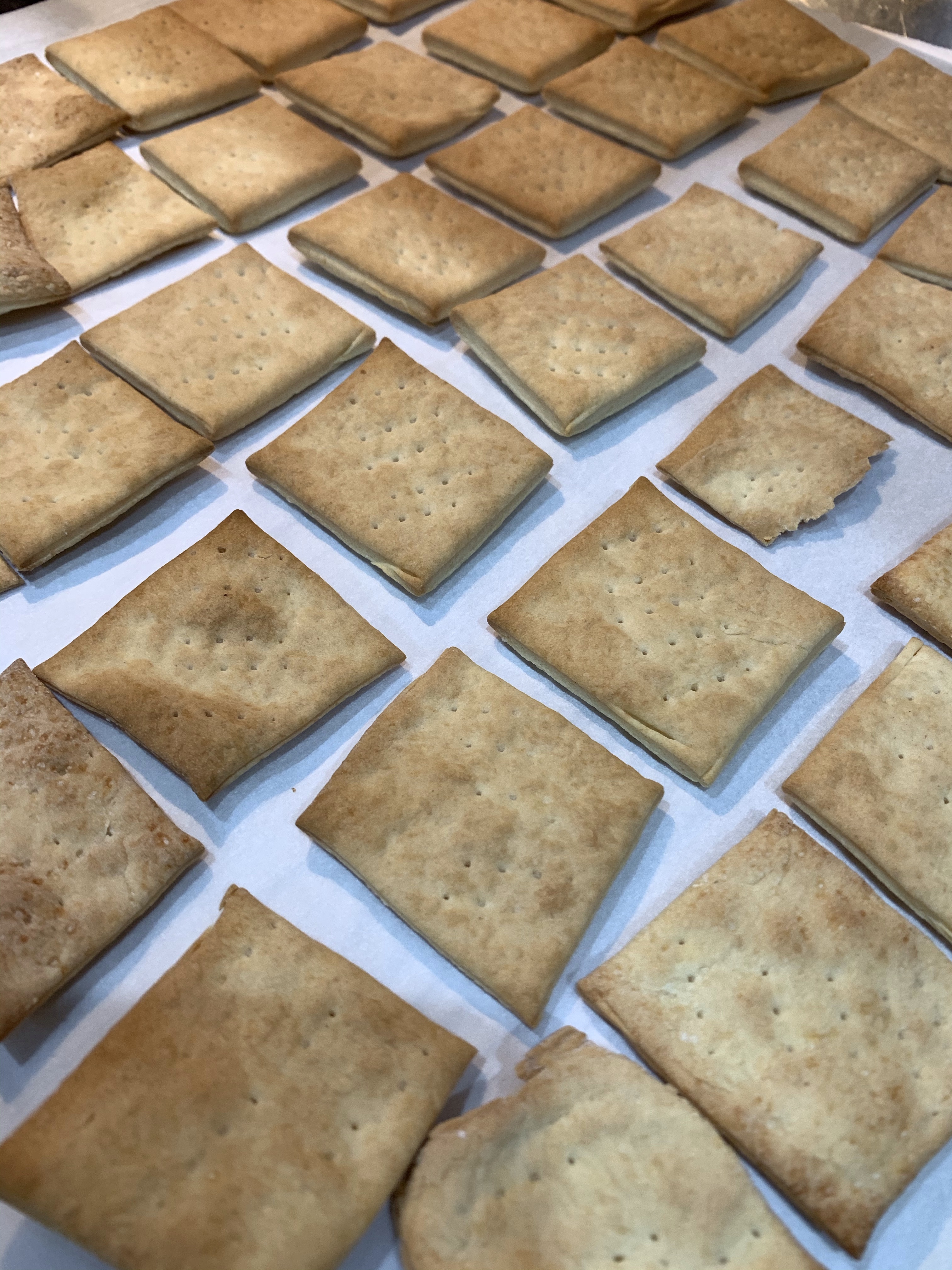 - When the crackers are completely cool, remove them from the oven, and wrap airtight, to preserve their crispness.