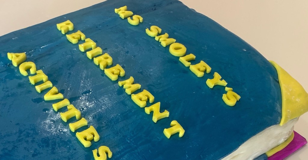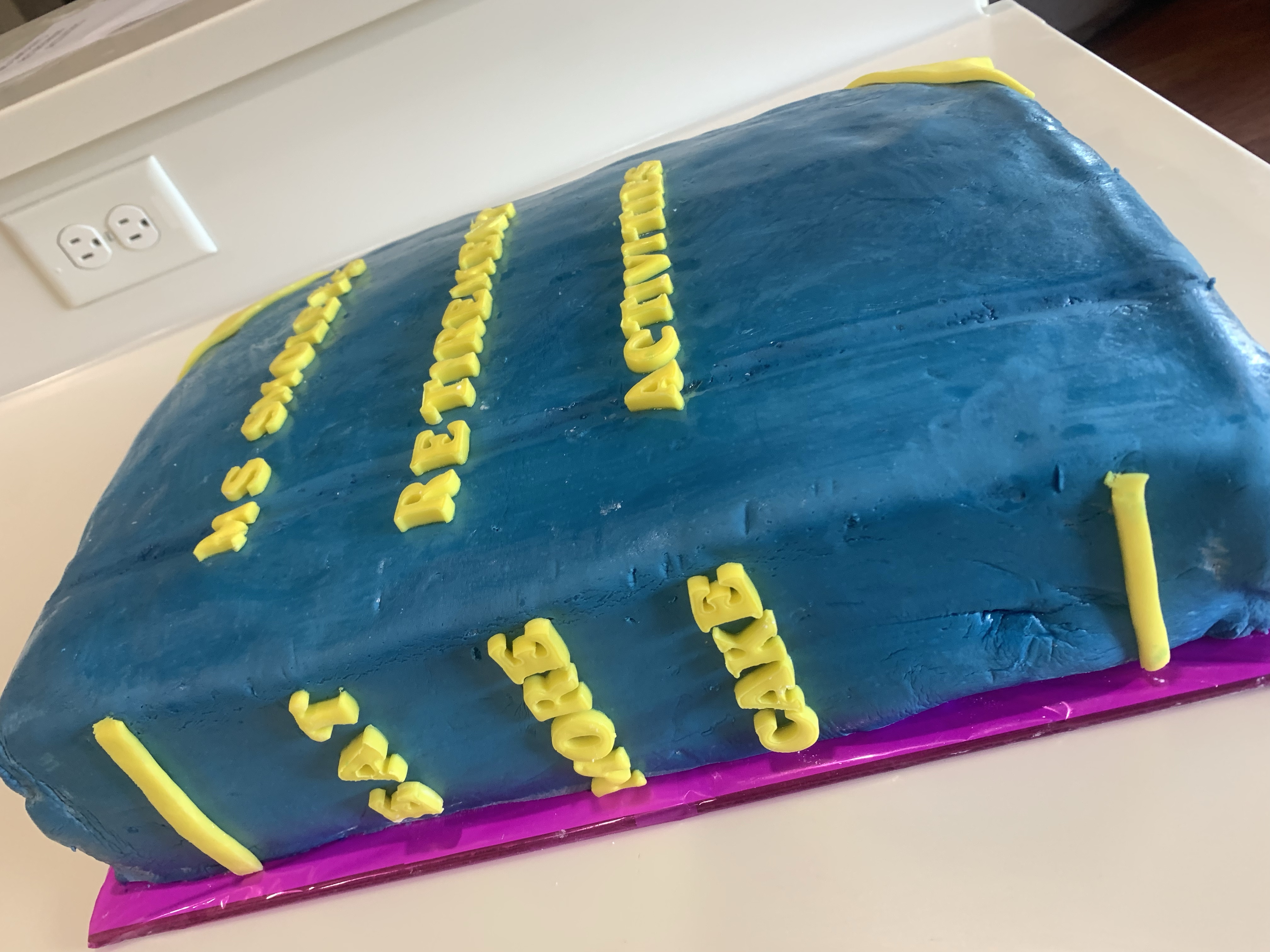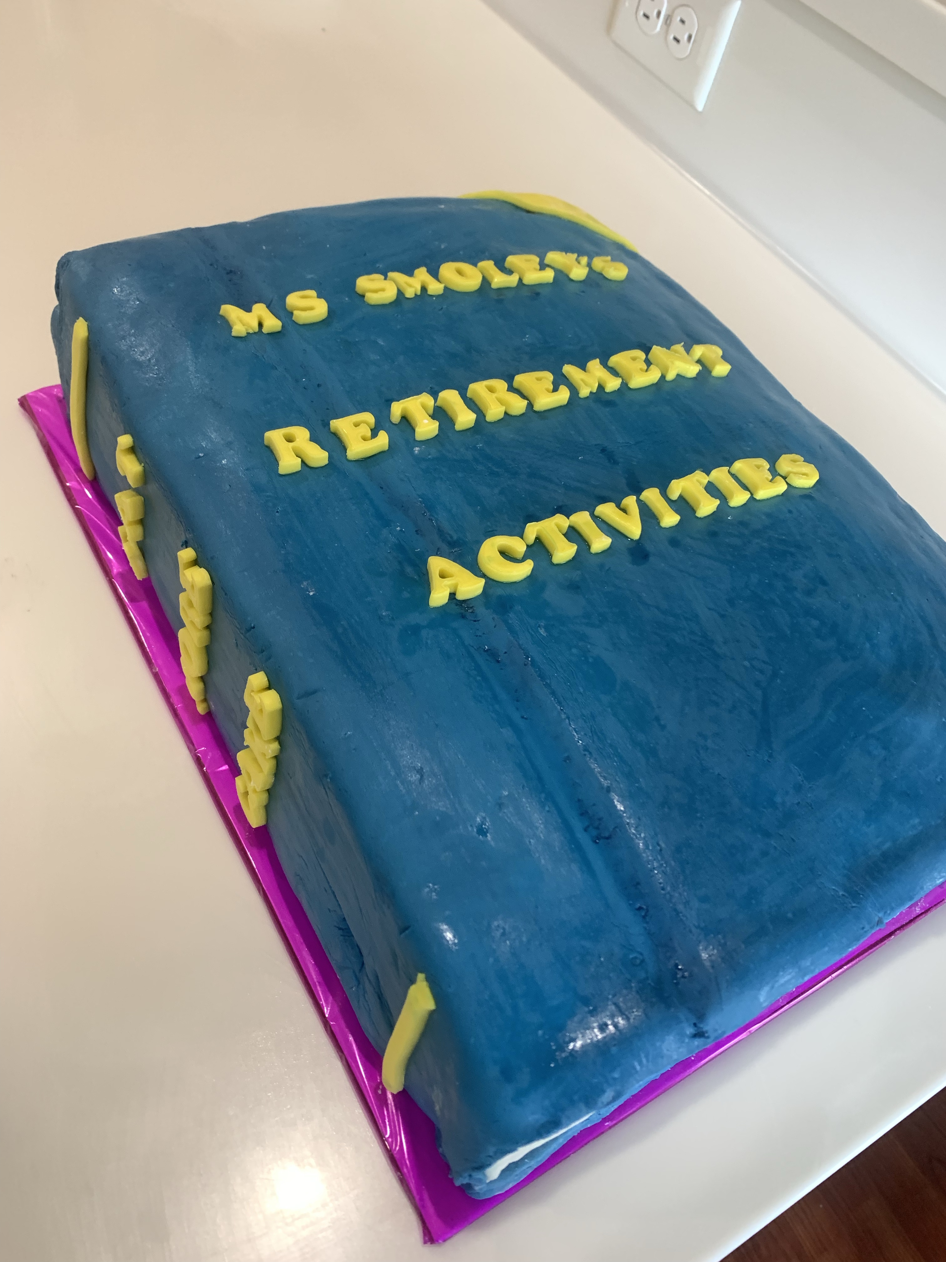 I thought a “Book Cake” would be an appropriate choice for a school principal’s retirement party. I was told she likes to read and likes chocolate cake, so….