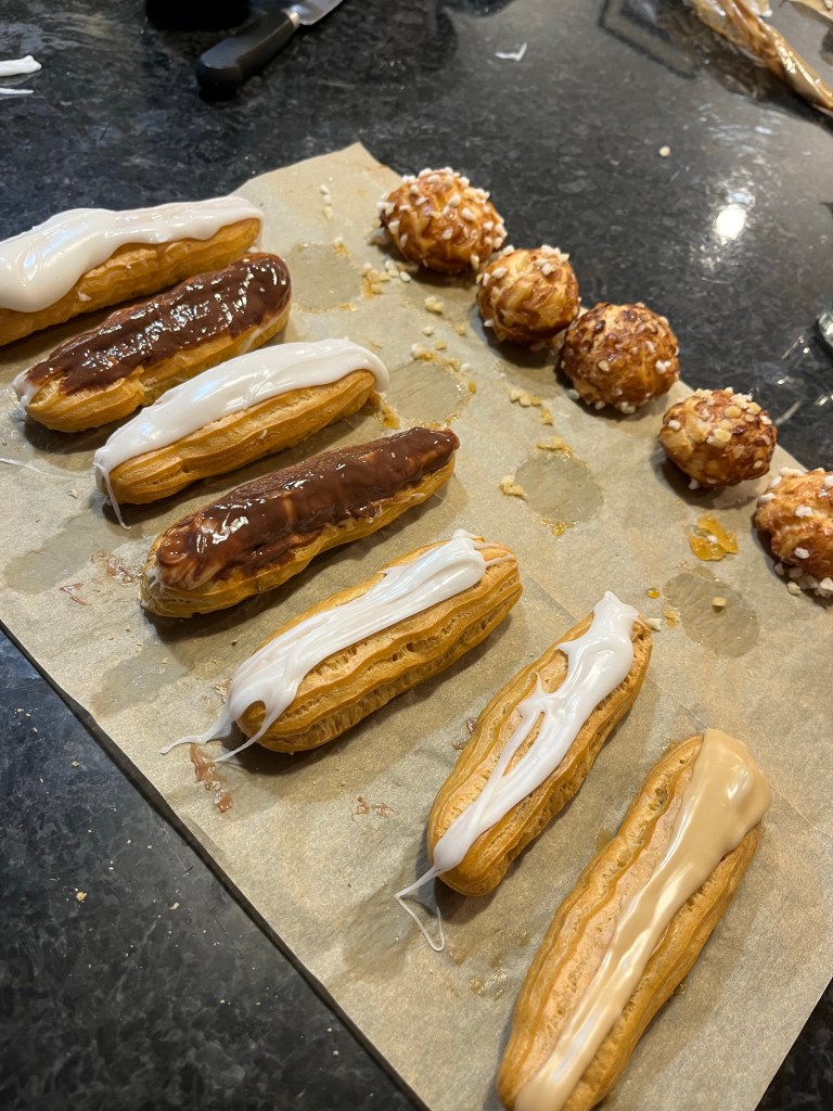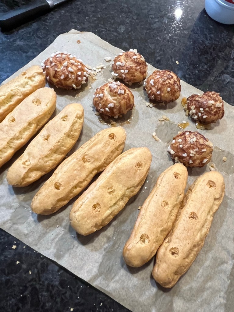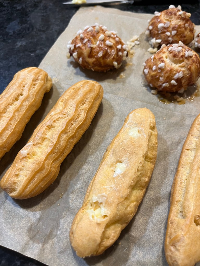 I make choux pastry for eclairs and/or profiteroles several times a year. When we were planning our European vacation with a stop in France I had the opportunity to include an afternoon, small group class on making choux pastry (and it was taught in English!)