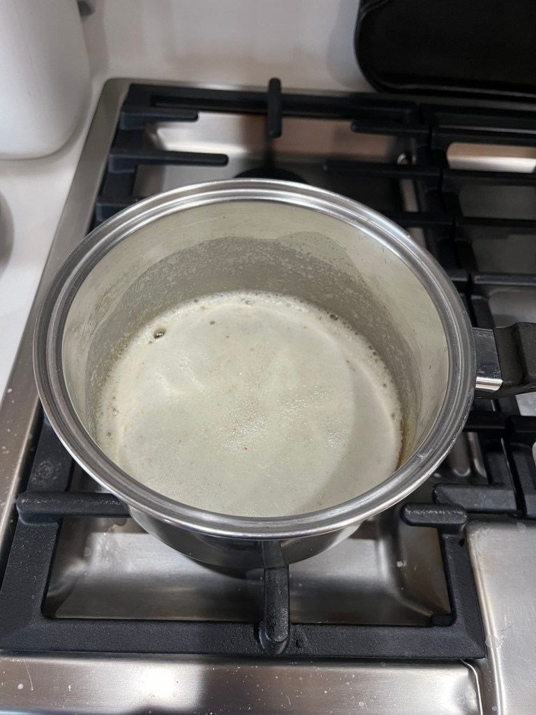 I never made brown butter before (but will again) and was an unsure when it was “done.” The recipe states it will foam near the end, but it also foams near the beginning. The second foam is very fine and if you stir the butter and you can see the browned butter with some bits stuck to the bottom of the pan.