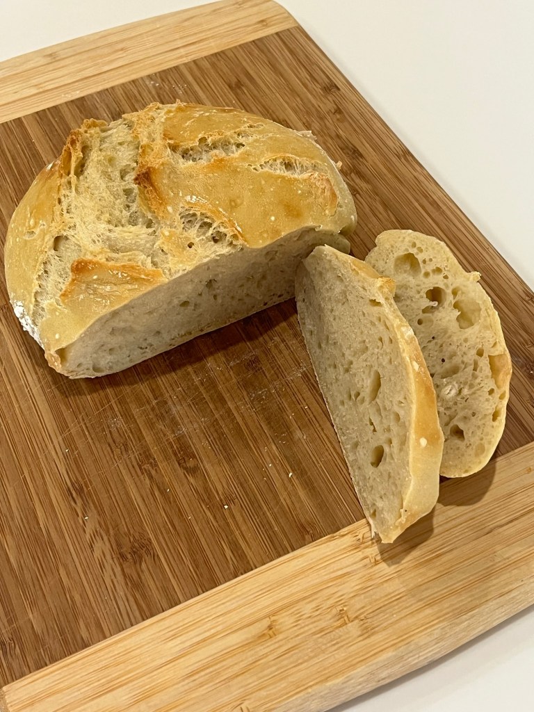 Thanks to my semester of college German (barely passed) and Google Translate, I knew this would be a crusty bread. I saw this recipe and method in YouTube and decided to give it a try. It’s not terribly different from other breads I make, but did you and overnight room temperature proof (12-18 hours) to develop flavor and structure.
