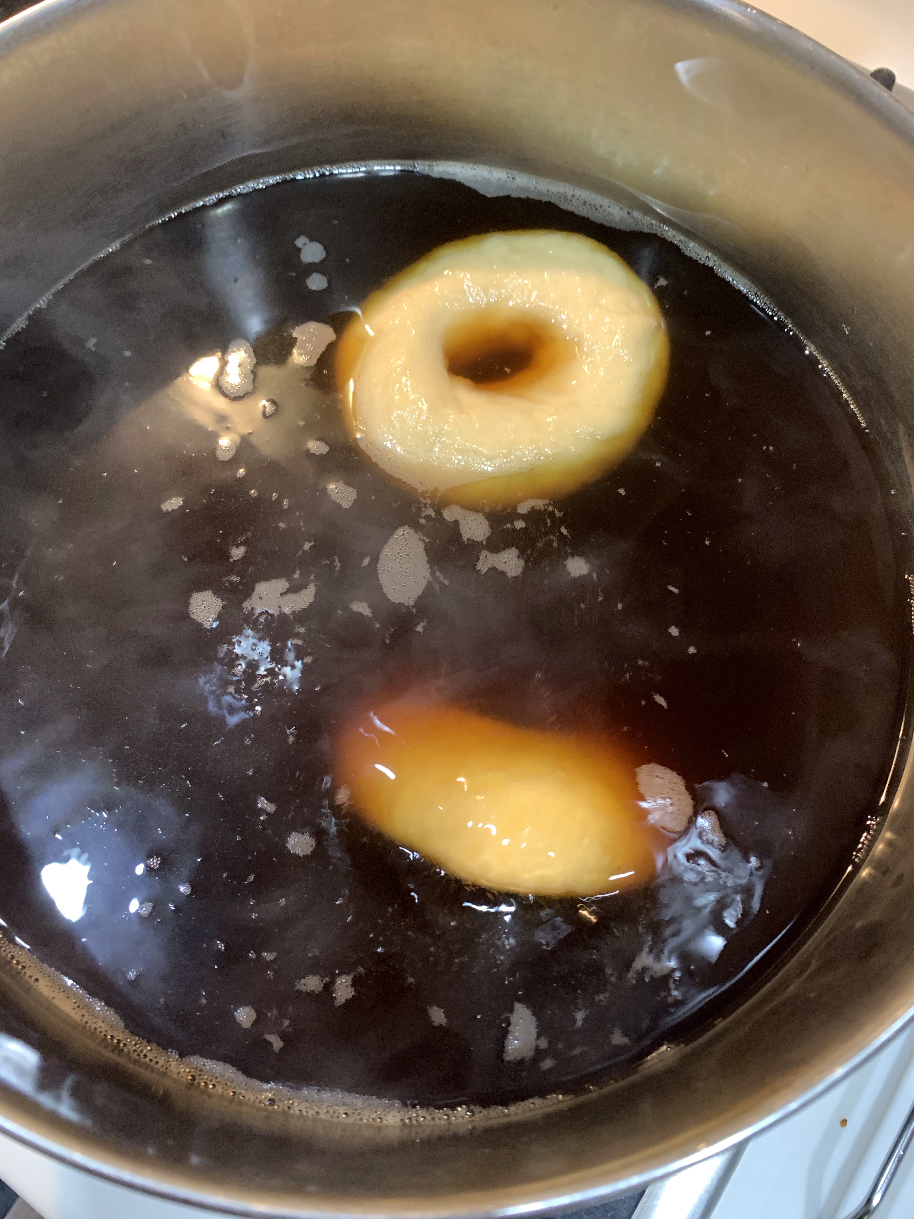 - In a large pot over high heat, bring 5 L water, 25 g molasses, and 10 g baking soda to a boil.
