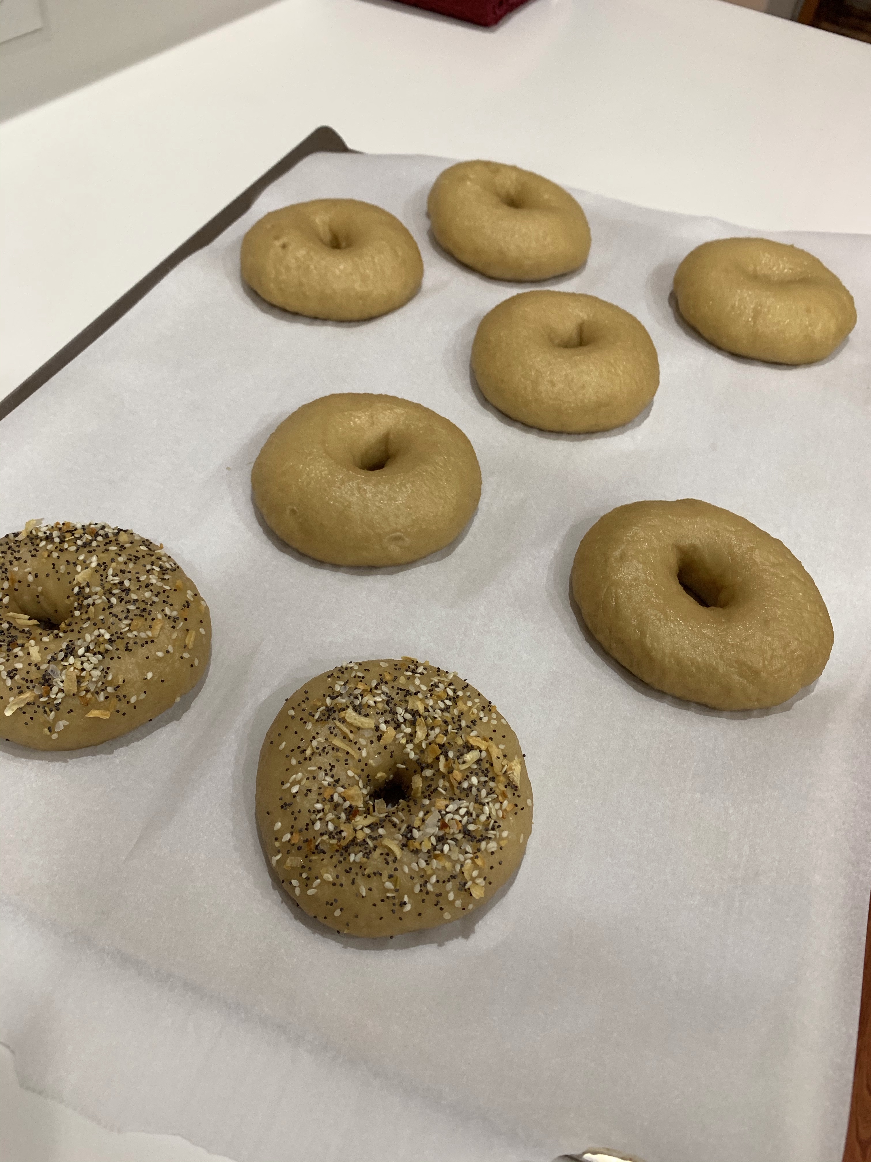 - (TRY AN EGG WASH ON SOME OF THE PLAIN BAGELS)