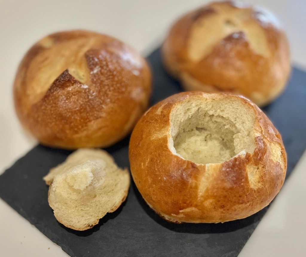 The bread has a nice crisp crust and soft crumb, but should be firm enough to hold a cup of hearty soup. Broths or something like chicken noodle would likely soak through. I plan on making Italian bread, garlic bread knots and soft pretzel bites for the thinner soups.