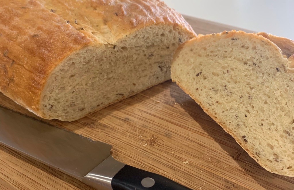 After reading a new recipe for sandwich bread I realized it was very similar to my “go to” artisan bread. The differences are two tablespoons of sugar are added to the water and yeast and allowed to rest for 10 minutes before adding the bread flour and salt, and the bread is baked in a greased loaf pan instead of a Dutch oven