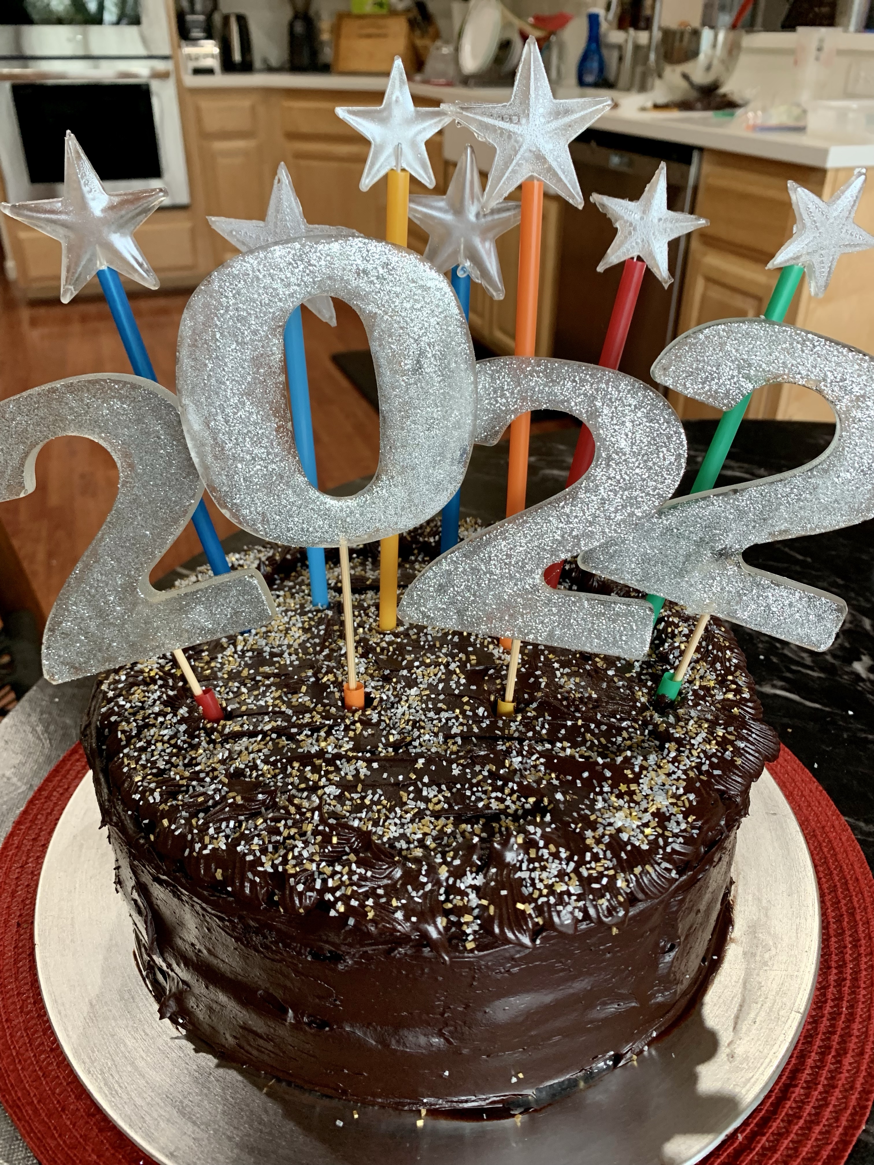 This year (as every year) New Year’s Eve party cake was requested (thankfully.) I love to make them. A couple of days later a follow up request for a silver 2022 topper which was an excellent suggestion. I decided to learn to work with isomalt to create the numbers, rather than buying some. It never hurts to add a new skill.