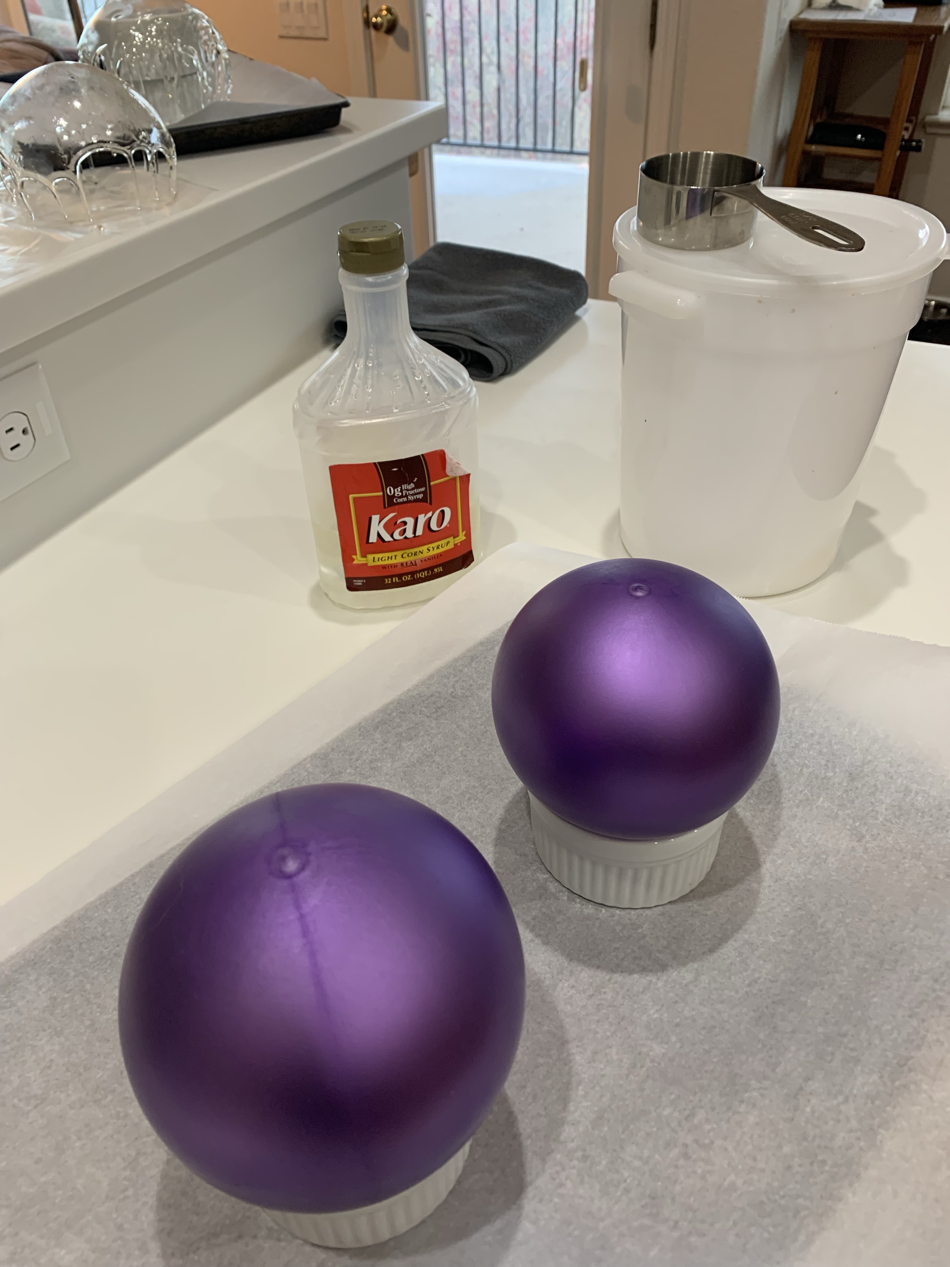 I changed my plan from a small dome on shell tart to a 5” fondant covered cake. Now I had to make the domes bigger and higher.