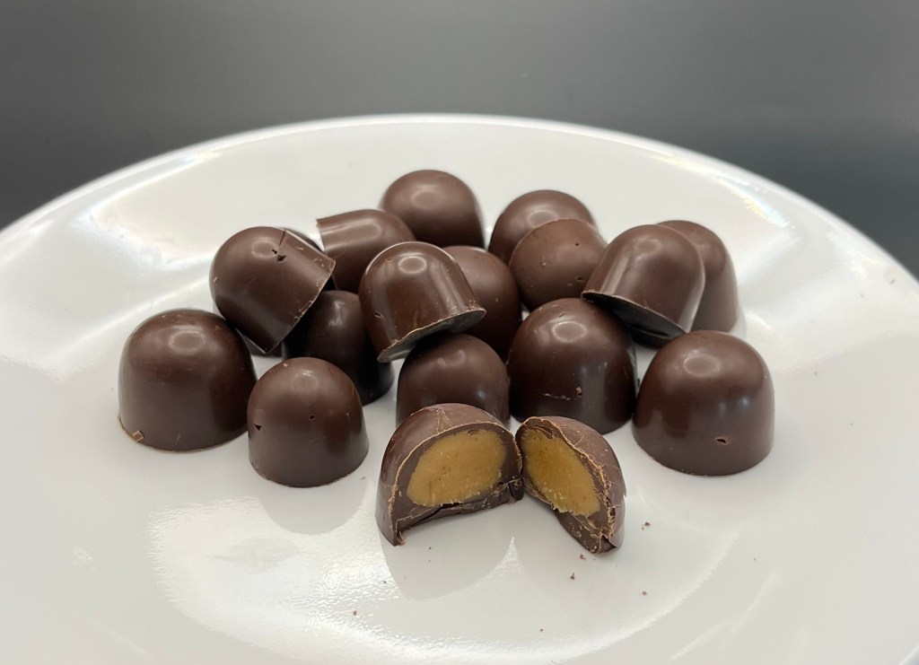 Cutting the chocolates for photos is always difficult. The tempering makes them hard and brittle. I used a very thin serrated knife. Any suggestions would be welcome.