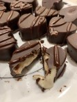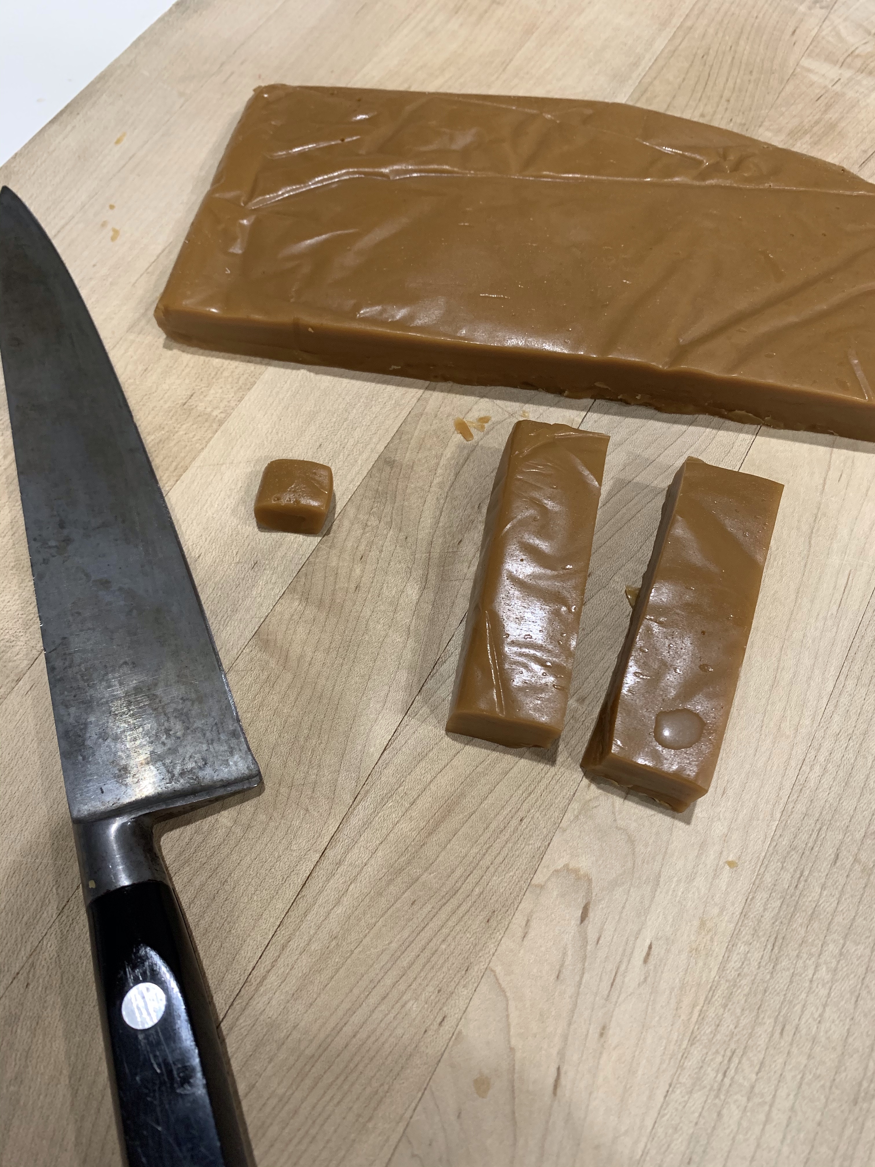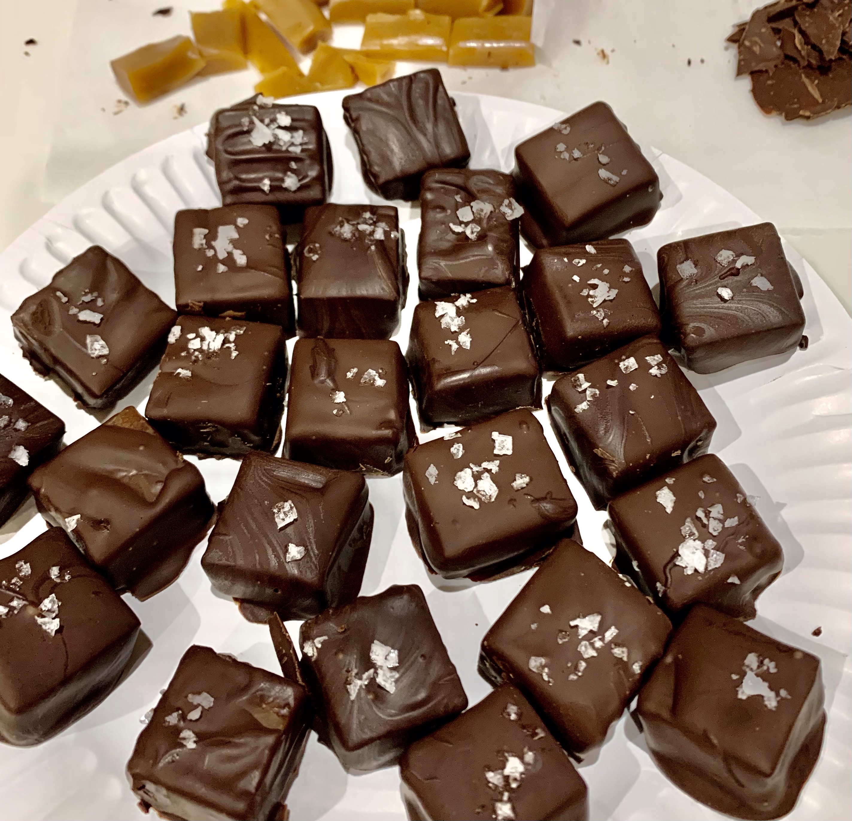 Last week I made hard caramels and embedded them them in tempered dark chocolate. They were fine, but what I really wanted were the soft caramel center and chocolate that melts in your mouth. I ticked all the boxes this morning.
