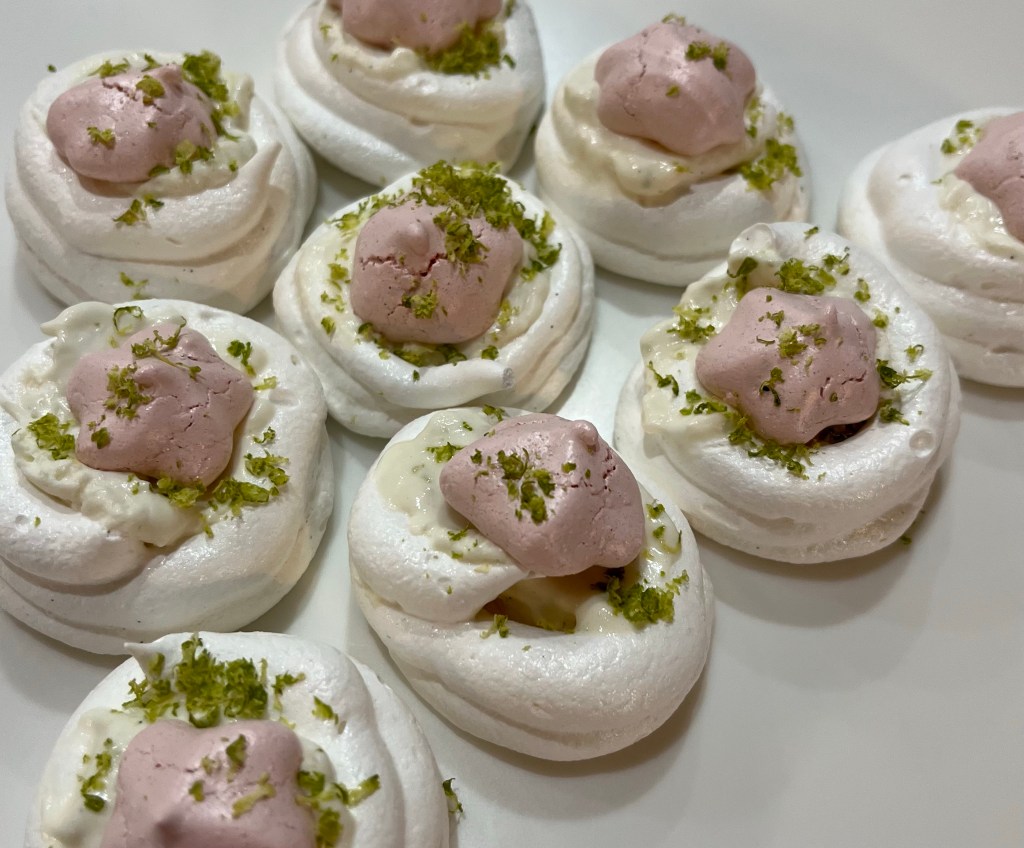 Place a kiss on each, sprinkle some lime zest on top of the tart and kiss.