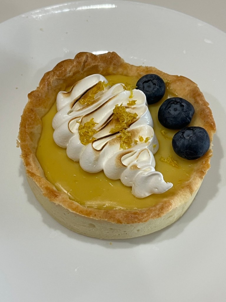 I did a search for different meringue/tart piping ideas and liked this one. After torching, I sprinkled some lemon zest on the top and will ultimately add a blueberry to each small tartlet and two or three to each large one.
