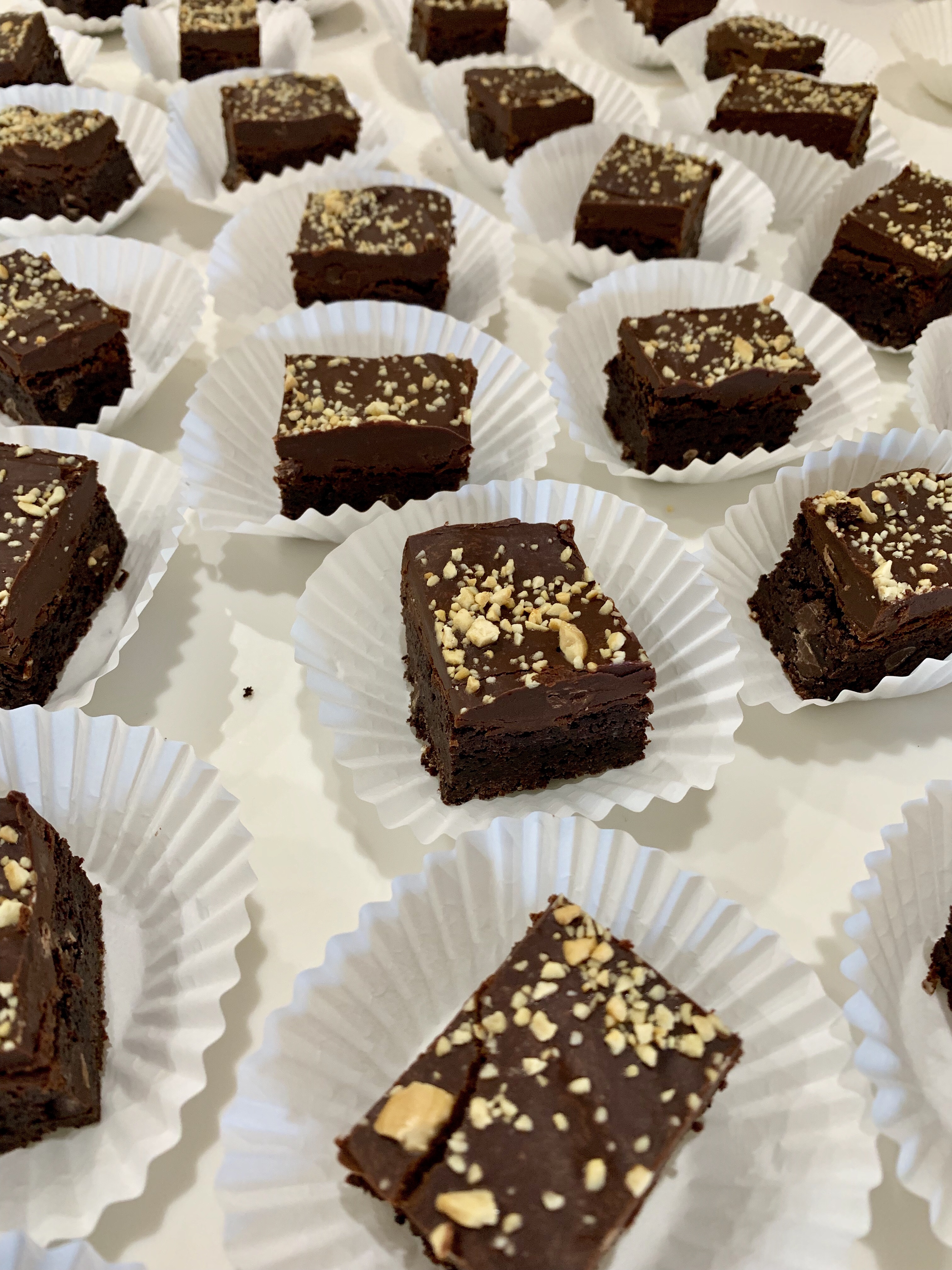 The Neapolitans are chocolate cookie based with a white cheesecake center and raspberry buttercream frosting, cut into 1” squares. Next time, I need to keep any skin from forming on the cheesecake. It kept the frosting from adhering properly.