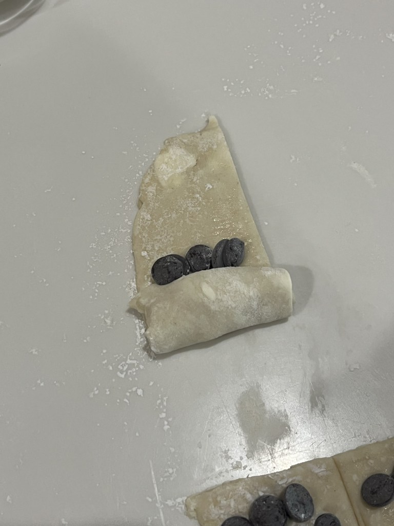 - Place blueberries on the center of the pastry (over the slits). I used ~ 12 blueberries per pastry.