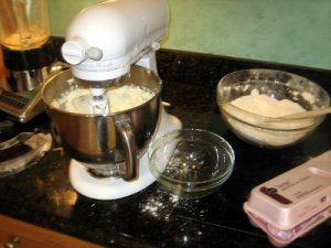 Both are described elsewhere in abatteredoldsuitcase so I won’t re-iterate here. I did substitute 3 oz of Frangelica for the vanilla to give the frosting the hazelnut flavor.