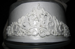 Freeze the cake overnight. To sculpt the cake place tooth picks in the center of each side, about one inch from the edge and cut a smooth curve from each corner, through the toothpick to the next corner. When completed, shave some of the cake away from the edges to make the rounded pillow look. Use some buttercream frosting to crumb coat the cake then put it back in the fridge to set. After a few hours I like to smooth it off with my gloved hands so the cake will have a very satiny finish.